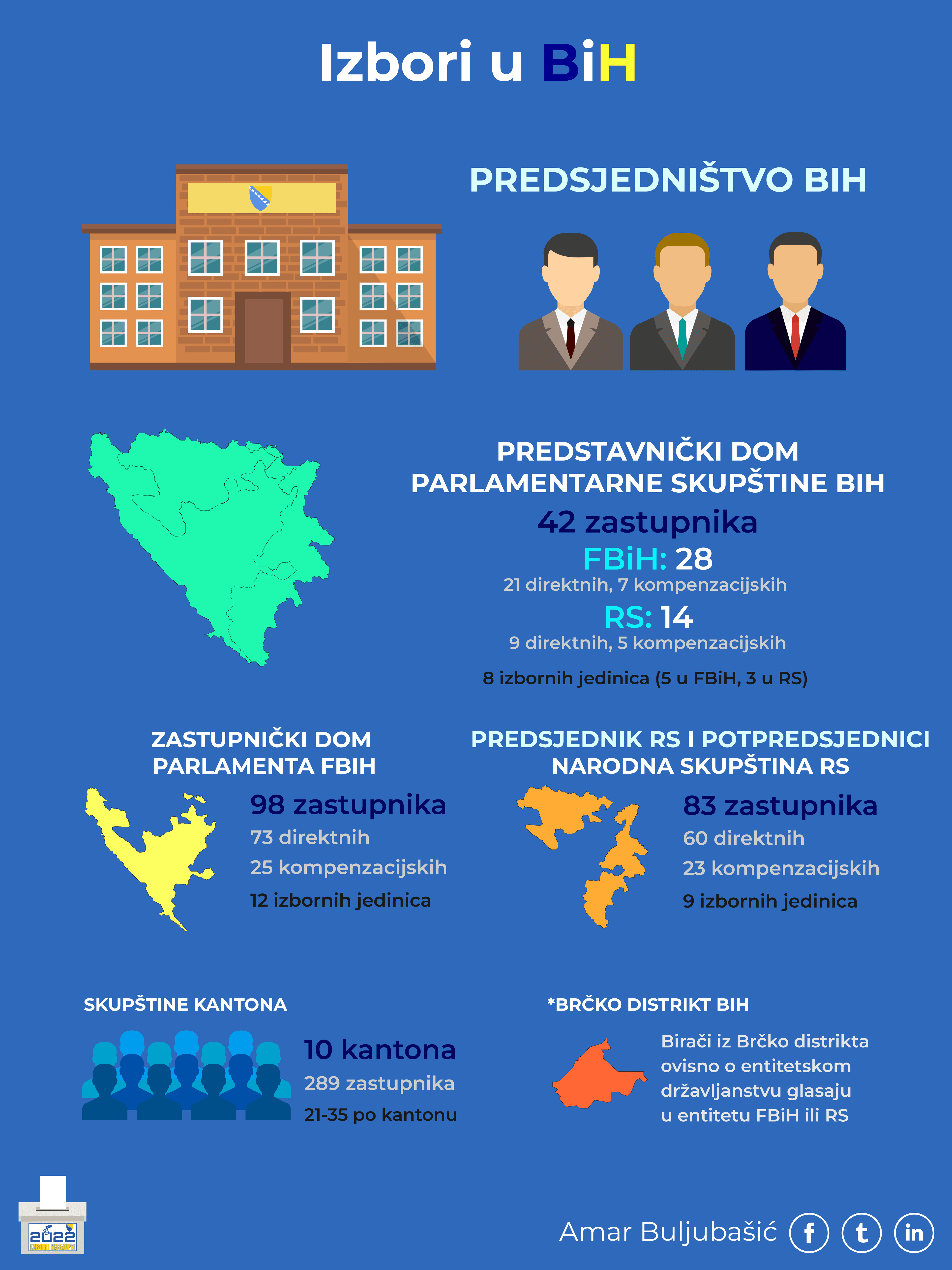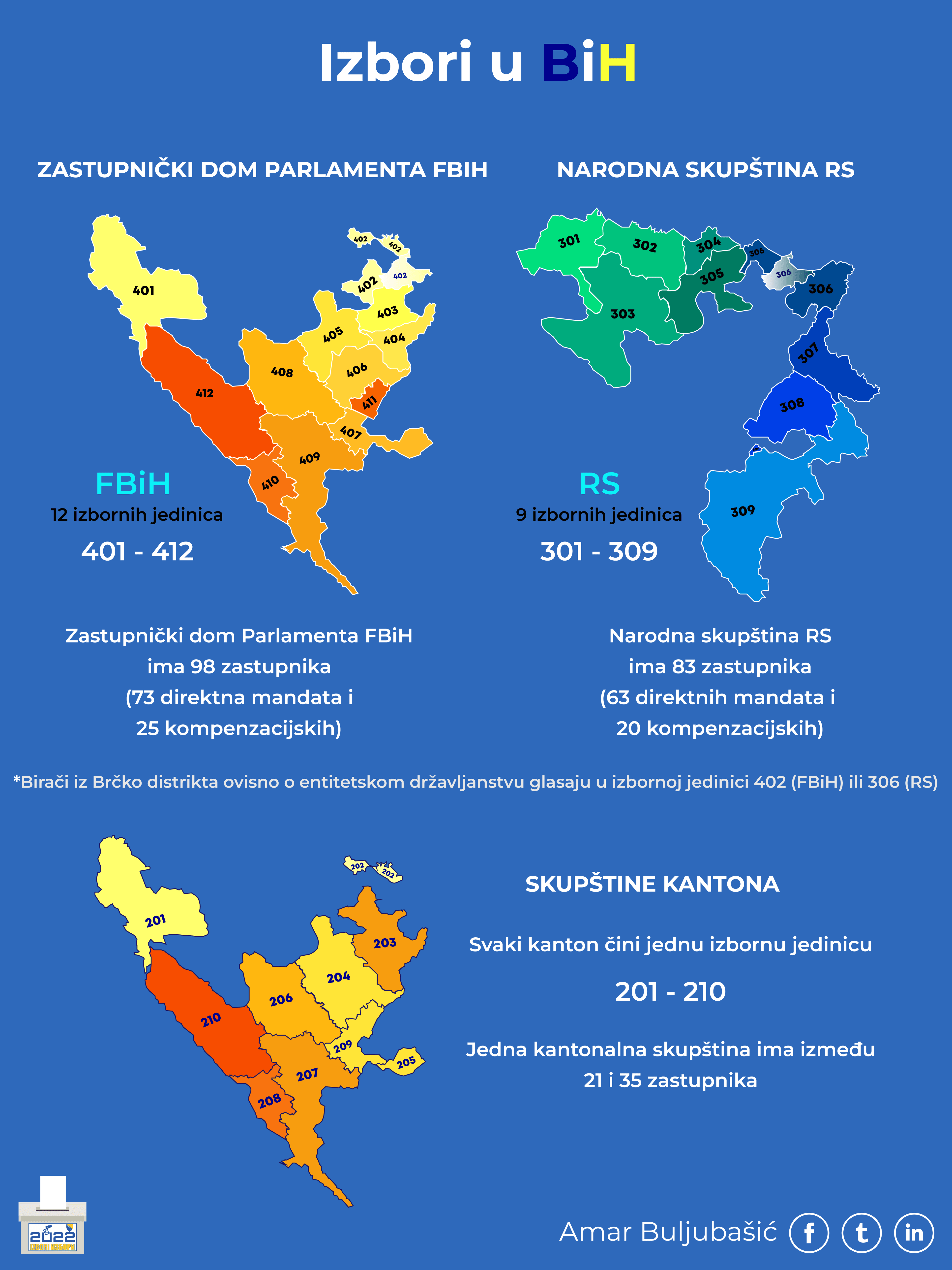Iako možda ovi brojevi djeluju dosta konfuzno, grafički prikaz mape BiH s izbornim jedinicama poprilično olakšava njihovo razumijevanje. Za glasača je najvažnije da se do 2. oktobra upozna sa izbornom jedinicom u kojoj glasa, te brojem direktnih mandata koji se dodjeljuju unutar te jedinice za svaki od nivoa vlasti.