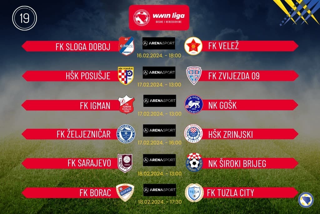 Ovog vikenda utakmicama 19. kola nastavlja se Premijer liga BiH u fudbalu, a koja će nakon potpisivanja ugovora Nogometnog/Fudbalskog saveza Bosne i Hercegovine i novog sponzora Williams d.o.o. nositi ime Wwin liga Bosne i Hercegovine.