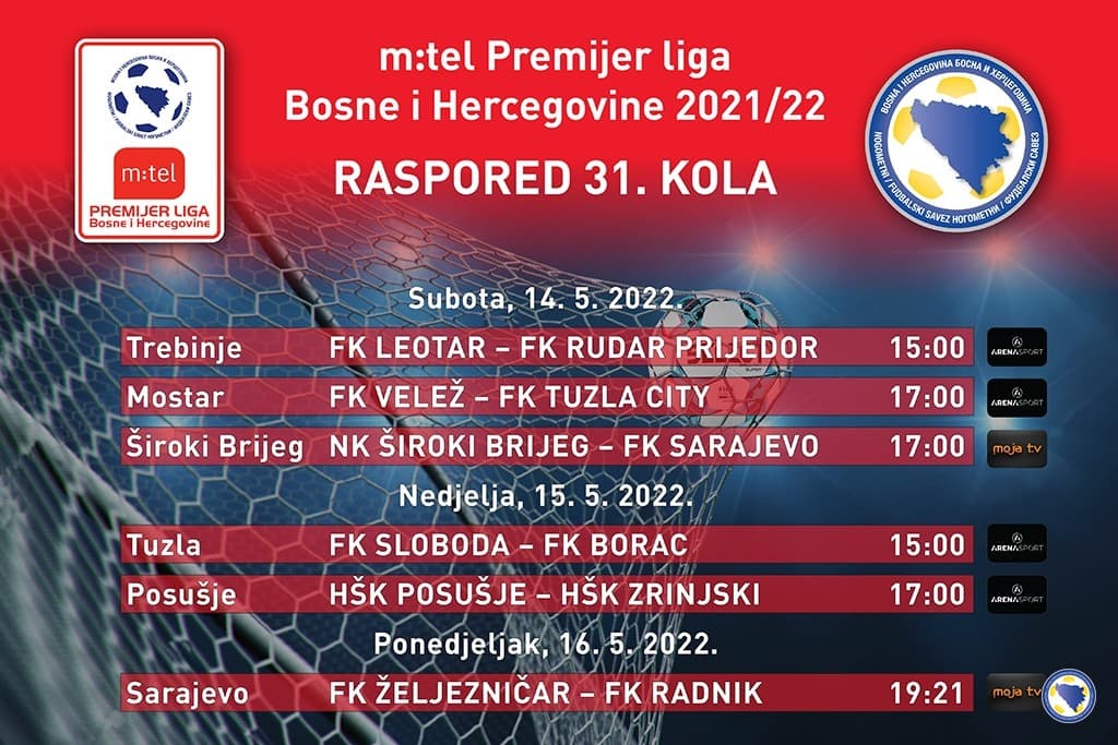 Sutra će na Tušnju kod Slobode gostovati Borac, dok novi prvak Zrinjski putuje u Posušje. Ovo kolo će biti kompletirano u ponedjeljak kada će na Grbavici igrati Željezničar i Radnik.