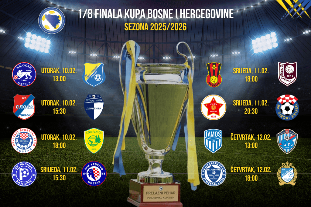 Ove sedmice utakmicama osmine finala nastavit će se takmičenje u Kupu Bosne i Hercegovine u fudbalu.