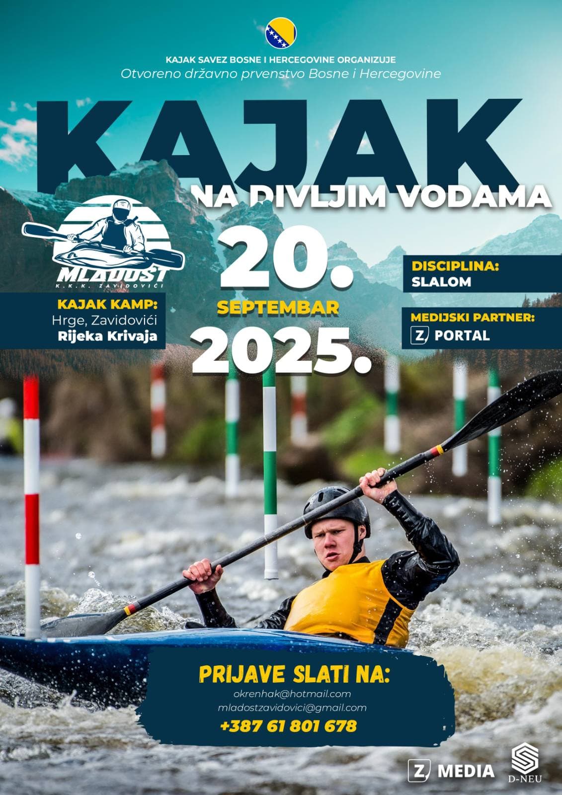 Na rijeci Krivaji, u mjestu Hrge kod Zavidovića, 20. septembra 2025. godine održat će se Otvoreno prvenstvo Bosne i Hercegovine u kajaku i kanuu na divljim vodama – disciplina slalom.