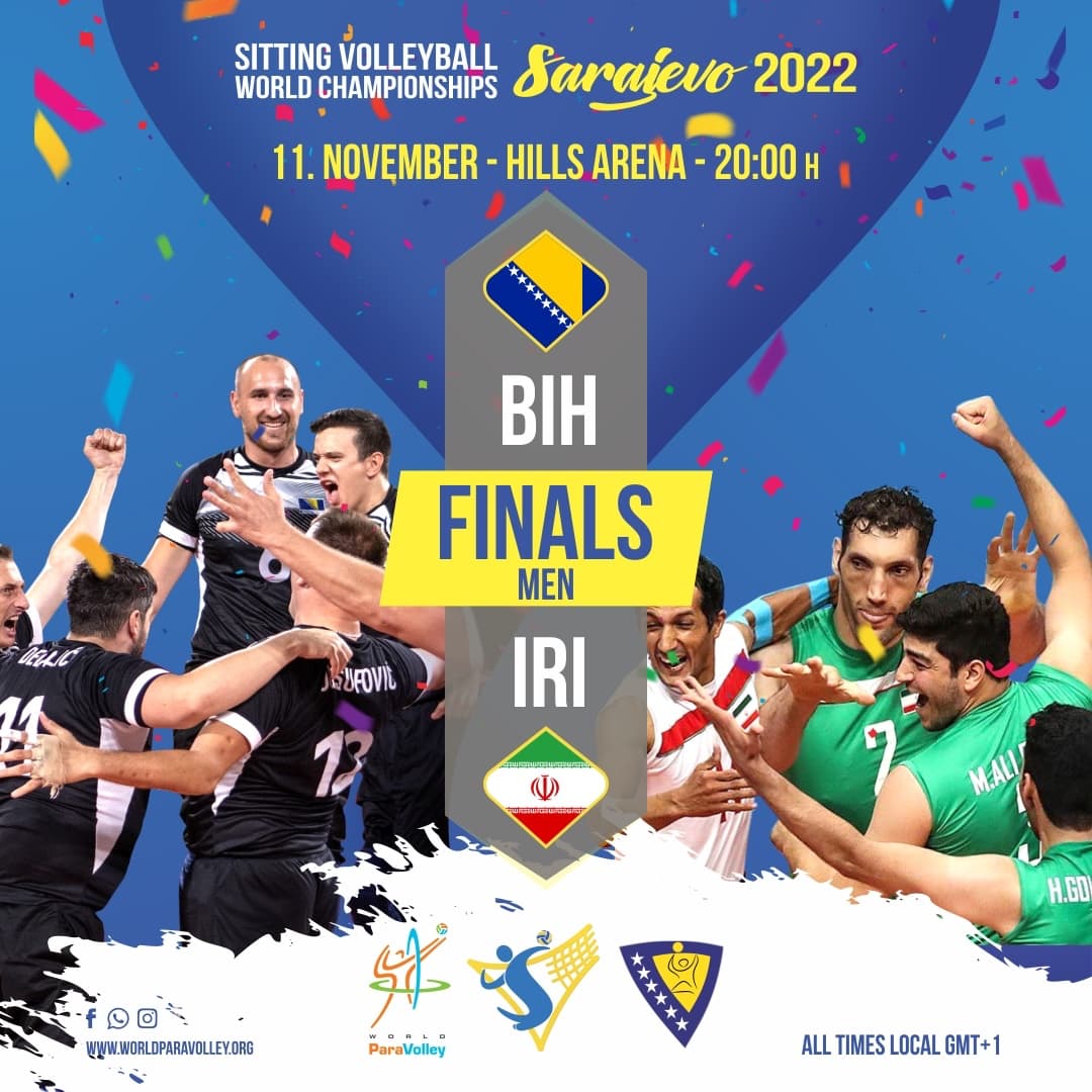 Reprezentacija Bosne i Hercegovine u sjedećoj odbojci večeras će u finalu Svjetskog prvenstva koje se igra u Sarajevu odmjeriti snage sa selekcijom Irana.