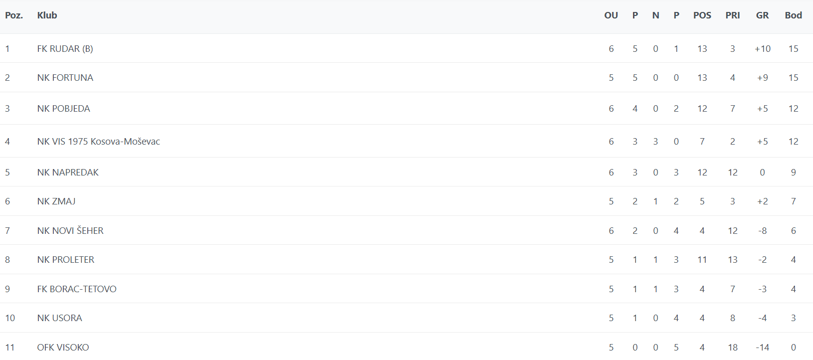 Jučer je odigrana prva utakmica ovog kola, a Rudar je u Brezi s minimalnih 1:0 savladao Zmaj pogotkom Ermina Sokića, te se tako izjednačio s vodećom Fortunom uz utakmicu više.