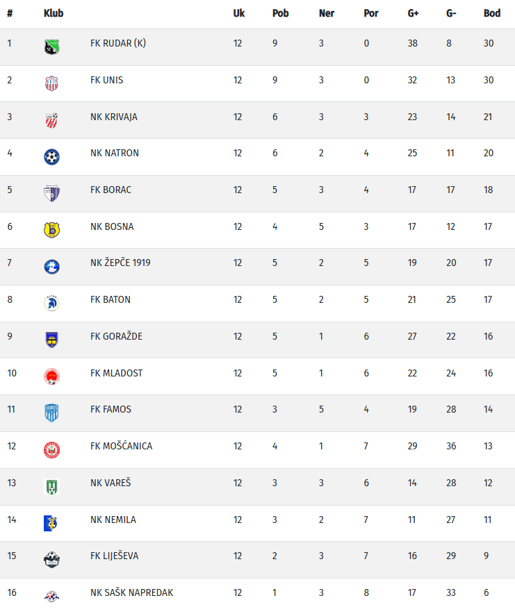 Momčad Unisa je iskoristila kiks Rudara te se bodovno izjednačila na vrhu tabele, a nakon pobjede rezultatom 5:2 protiv Goražda. Za pobjedu Unisa strijelci su bili Armin Cibra, Dino Operta, Haris Čelebić, Faruk Hodžić i Eman Spahić, dok su pogotke za goste postigli Sanin Kanlić i Eldin Dučić.
