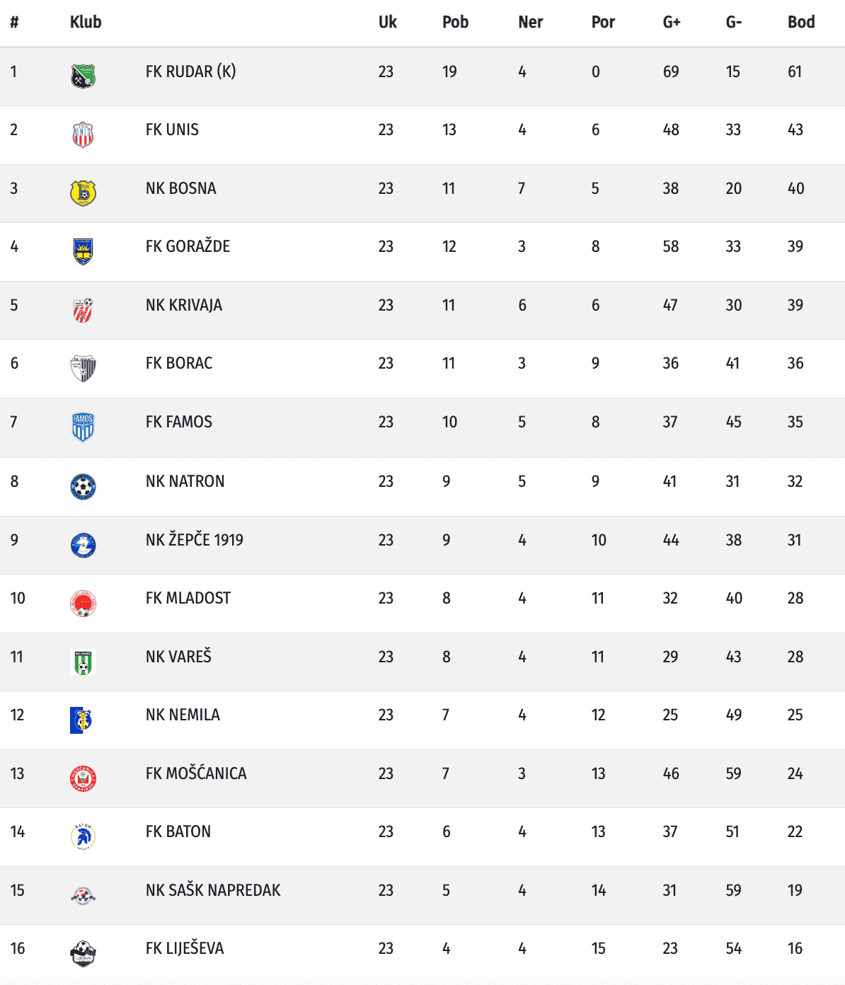 U susretu subotnjeg programa, prvoplasirani Rudar je sredinom drugog poluvremena slomio otpor Natrona i upisao minimalnu pobjedu, a gol odluke je postigao Rijad Smolo.