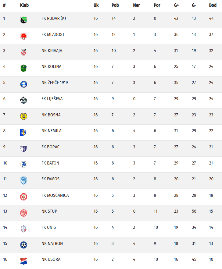 Vodeći Rudar je pohod na prvo mjesto nastavio pobjedom protiv Nemile. Iako su gosti iz Nemile poveli autogolom na otvaranju utakmice, kakanjski tim je preokrenuo preko Belmina Kobilice i Amina Alagića, da bi potvrdu pobjede Rudara rezultatom 3:1 potvrdio Adi Bešić u nadoknadi drugog poluvremena.
