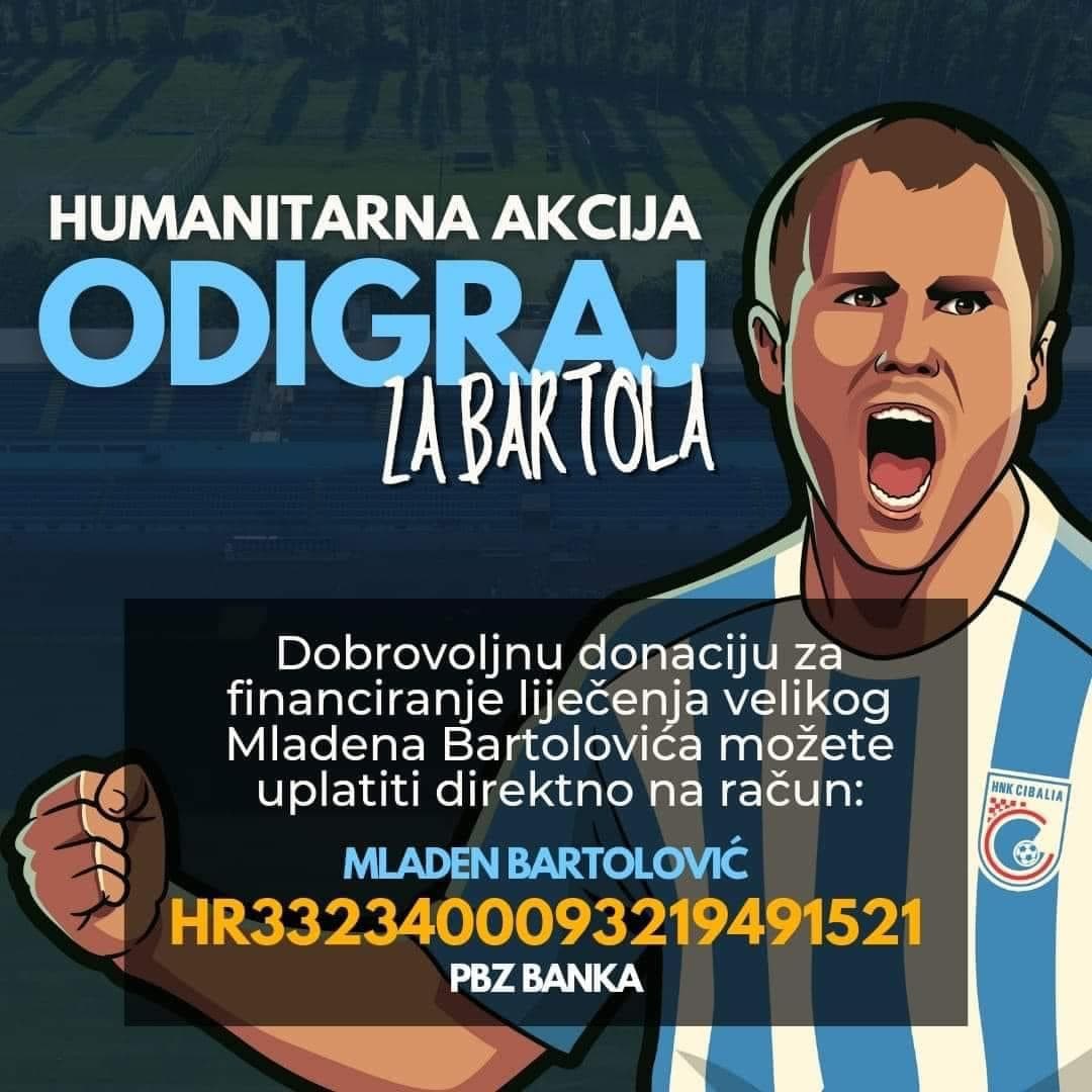 Iz tog razloga HNK Cibalia je zajedno sa svojim navijačima pokrenuo humanitarnu akciju “Odigraj za Bartola”, te će sutra biti odigrana turnir i revijalna utakmica između navijača i legendi kluba u cilju prikupljanja priloga za pomoć liječenju Mladena Bartolovića u Njemačkoj.