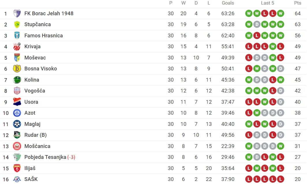 S ovom pobjedom ekipa iz Jelaha je stigla do šampionske titule, a od ranije je poznato da će u doigravanju za Prvu ligu FBiH igrati protiv NK Gradina iz Srebrenika. Stupčanica sezonu završava kao drugoplasirana, treća je ekipa Famosa, a Krivaja je zauzela solidno četvrto mjesto.