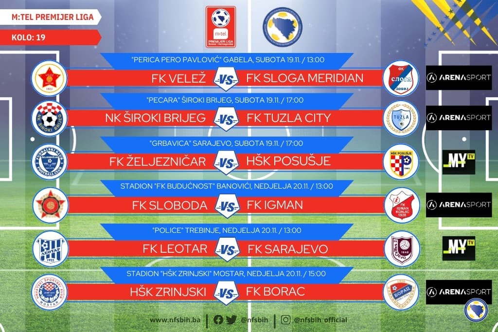 Ovog vikenda će biti odigrani mečevi 19. kola m:tel Premijer lige BiH u fudbalu, a čime će biti spuštena zavjesa na jesenji dio prvenstva i fudbalska dešavanja u našoj zemlji kada je riječ o ovoj kalenderskoj godini.